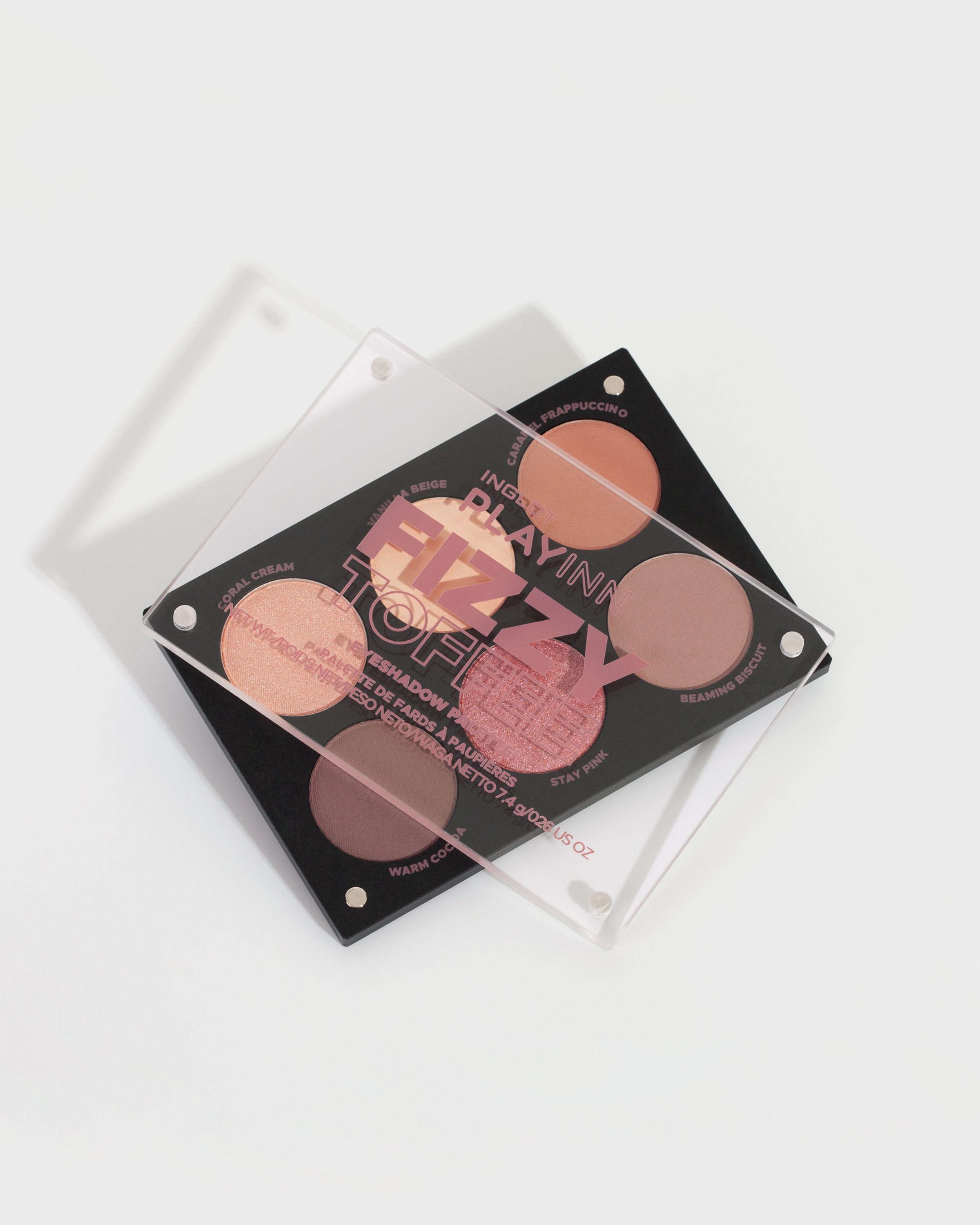 La palette Fizzy Toffee est un charmant mélange de bruns et de beiges classiques mats avec une teinte rose irisée. Cette palette s’intègre parfaitement à tout type de maquillage et vous laisse la liberté de choisir vos touches finales. Elle contient quatre fards mats veloutés et deux fards nacrés.
